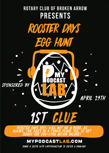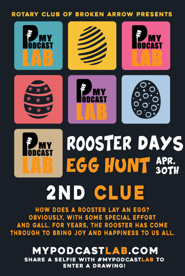 The Rooster Egg Hunt is facilitated by the Rotary Club of Broken Arrow, a 501(c)3 corporation. This fun public contest has been supported by the Broken Arrow Chamber of Commerce for many years and has a large number of followers, eagerly seeking each clue and bringing recognition to the businesses sponsoring the contest.
